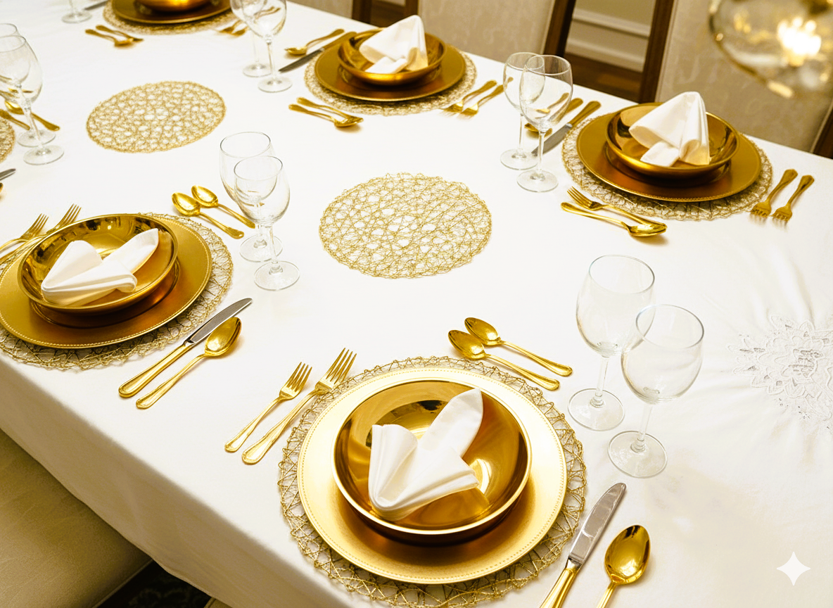 הפלייסמנטים עשויים מחומר גמיש ועמיד, נוחים לניקוי ומעוצבים להעניק מראה חגיגי גם לארוחה יומיומית.